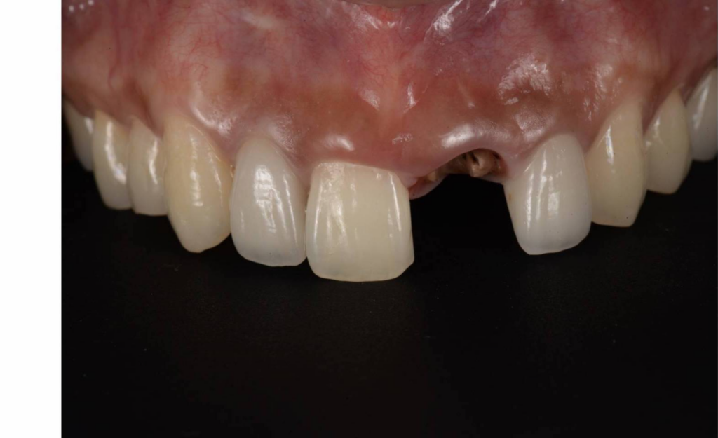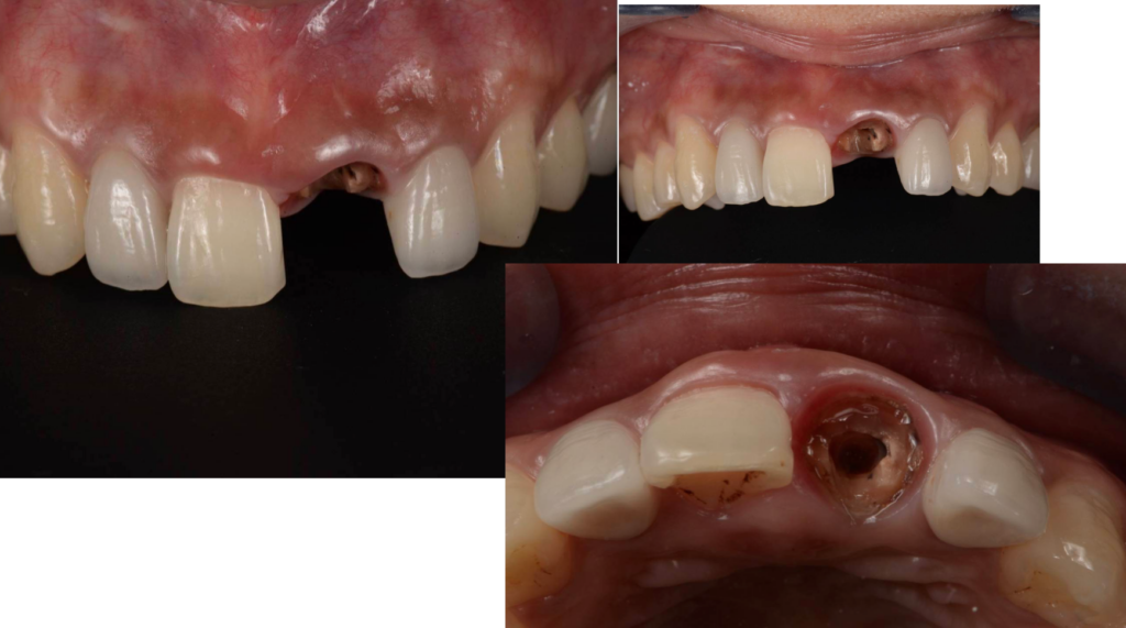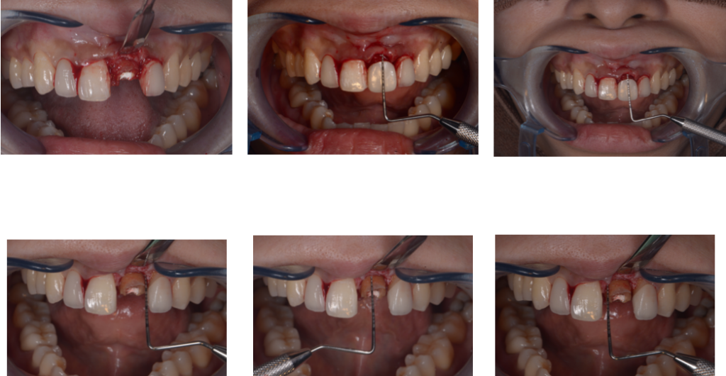 上写真の患者さんは前歯ですので歯茎を骨だけ削ってフェルールを確保しようとすると周りとのバランスで見た目が悪くなってしまいます。